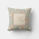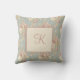 Monogram vita och rosa rosor på blå bakgrund kudde