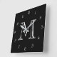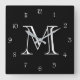 Monogram vita skriptnummer på svartvitt fyrkantig klocka