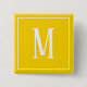 En fyrkantig knapp med ett vitt monogram på en gyllene gults bakgrund. Anpassa knappen med en egen initial eller initialer, färg, bland andra alternativ.
