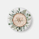 Monogram Watercolor Rustic Wood Slice och Foliage Magnet