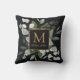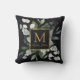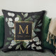 Monogram Watercolor Tropical Green Leaves Black Kudde