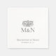 Add an elegant touch to your celebration with custom napkins. This stylish wedding design features the couple’s monogrammed initials, classic serif typography, and a vintage floral motif with stylized flowers and ornate foliage. Additionally, the template can be personalized with the bride and groom’s names, and the event date, to create a truly bespoke design. Perfect for wedding receptions, rehearsal dinners, engagement parties, cocktail parties, anniversaries and formal events. Printing colors: neutral dark gray, and white, or customize the colors to suit your scheme. Explore the online collection for matching printed designs!