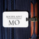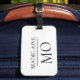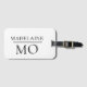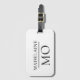 Elegant monogram på din personliga bagagetapp. Vit bakgrund med svart teckensnitt.