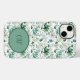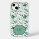 En vacker vit blommigt grön med eukalyptus iphone case. Monogram det med initialer eller kort namn. Tillgängligt i iphone case stilar.