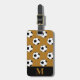 Bagagetagg med svartvit fotboll bollar, inledande monogram/namn och adress på en projekterad guld-bakgrund. Anpassa med dina inledande/inledande/inledande/inledande/namn, namn och adress med hjälp av de enkla mallarna. Färg, stil, storleka teckensnitt och projektionsytebakgrund för guld är anpassade. Perfekt för idrottsentusiasten.