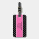 Monogrammed svart och vit polka punkt mönster. Vit polka dots på svart och i mitten finns en shock rosa rektangel där du kan lägga till texten och på andra sidan finns en shock rosa som du kan placera monogrammet i.