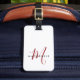 Monogram White Red Modern Minimalist Initial Namn Bagagebricka