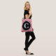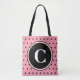Chic, reversibelt svart polka dots på rosa bakgrund. Framsidan av säcken har en stor svart cirkel att anpassa med den inledande mongrammen i vit text. Nya trendigets geometriska kvinnoväska mode under vilken säsong som helst. Originaldesign © TamiraZDesigns. www.zazzle.com/tamirazdesigns
