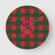 Monogram Winter Holiday Tartan pattern Scottish Rund Klocka