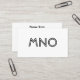En monogram av initialer eller kortsluter namn syns på bekläda. På baksidaen kommer ut tilltalar full känd text, text, och telefon- eller socialmassmedia som knyter kontakt text.