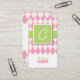 Den grafiska visitkorten med det rosa argylemönster och ett linnefullföljande skyler över brister. Skräddarsy med en monogram på bekläda.