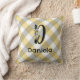 Dekorativ kudde har ett vackert designat, monogrammat, initialt "D" i ett vackert vattenfärgsmotiv, kombinerat med ett charmigt blått grått gingham diagonal mönster. Det ger en idealisk gåva från pension, som visar både personifiering och en smula elegans som säkert kommer att öka utrymmet.