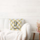 Monogramblomgingham blue grått kudde