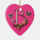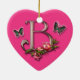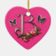 Monogrambrev B med rosa och fjärilar på en hjärta formar prydnaden.