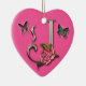 Monogrambrev J med rosa och fjärilar på en hjärta formar prydnaden.