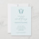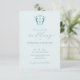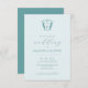 Spara på pappra och ekonomiska medel med den här bröllopsinbjudan på monogram med QR-kod. Den här bröllopsinbjudningen är en enkel och klassvänlig utformning och innehåller både kalligrafi-typografi med ett klassiskt sans-teckensnitt i turkosa blå över en blå blek. En elegant vapensköld ramar bruden och brudgummens initialer. Kortet återgår till en solid turkos färg med bröllop QR-kod och utrymme för ytterligare information. Hela färg är anpassade. Mer bröllopsinbjudningar finns på www.zazzle.com/dotellabelle