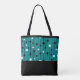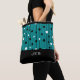En fräsch och modern shoppingväska med en cool grafisk känsla. Designen kombinerar skarpa svarta linjer med lekfulla svart-vita cirklar, satta mot en djup teal bakgrund för ett utseende som känns rent, modernt och stilfullt utan ansträngning. Det solida svarta bandet ger balans och ger ditt anpassade namn, initialer eller korta text en tydlig plats att sticka ut med klassisk vit typografi.