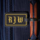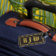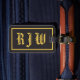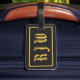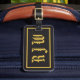Monogramen märka med sina initialer guld på svart bagagebricka