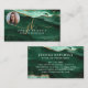 Modern, snyggt professionell-affärskort med grönt agate och marmor med faux guld glitter venins och gnistra accentuerar personlig med finare med handskrivet initialer med namn med med handskrivet med dekortecken och och ditt foto. ASSISTANS: Om du vill ha hjälp med designändringar eller anpassning eller om du vill samordna objekt kontaktar du designern INNAN ORDERING via fliken Zazzle Chatta MESSAGE eller e-postmeddelandet makeitaboutyoustore@gmail.com.