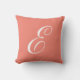 Personligens monogramkudde med ett klassiskt skript brev E på en korallbakgrund. Tillverkade i USA av tvättbar bomull eller polyester från maskin. Perfekten för Elizabeth, Emily, Emma, Erica, Erika, Erin, Eva, Ellen, Esther, Elena, Evelyn eller någon annan som är namn börjar med brev E.