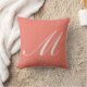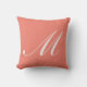 Personligens monogramkudde med ett klassiskt skript brev M på en korallbakgrund. Tillverkade i USA av tvättbar bomull eller polyester från maskin. Perfekten för Mackenzie, Madeline, Madison, Maria, Mariah, Marissa, Mary, Megan, Michelle, Miranda, Monica, Morgan eller någon annan som är namn börjar med brev M.
