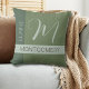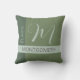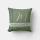 Dekorativ monogramkudde för att matcha din hemdekoration med eget namn, efternamn och monogram i gröntens nyans.