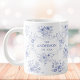Monogramklassiska blå blommor blomster mönster jumbo mugg