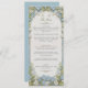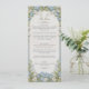 Presentera din bröllop-fest med oöverträffad elegans med hjälp av det här krävande blåa och vita menykortet för blommigt. Menysidan har en skarp överkant med orden "Menyn" inskriven i ett sofistikerat skript. Fintvätt av vita och blek blå blommar, som påminner om hydrangeer eller liknande grupperade blommor, tillsammans med subtle grönt foliage, skapar ett bedövande, nästan tredimensionellt gräns mot en mjuk krämbakgrund, som ger en fin kulinariemarkering. Den omvända sidan erbjuder en sofistikerad bakgrund för ditt personlig bröllop monogram (initialer visas som exempel). Den visar ett berikat vitt dekorativt ram med klassisk blomning och snurrning, perfekt centrerad på en ren dammig blå bakgrund. Denna utformning omfattar klassiskt romantik och en mer sofistikerad utformning, perfekt för ett formellt bröllop, vår eller sommar-firande, eller varje händelse där skönhet och elegant utan tidsplaner är av största vikt.