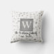 Monogram anpassningsbar vid kudden grått och vit polka punkt mönster med text som anpassar sig för unik hemdekoration.