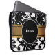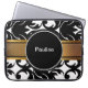 Damastast laptop sleeve med monogramutrymme som tillfogar ett namn eller initialer och svartvit bakgrund som skyddar din bärbar dator, netbook eller tablet i stil. passformar 15 flytta sig mycket långsamt mobila apparater.