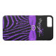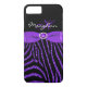 Det Monogrammed moderna fodral för iPhone 7 för mönster för randen för sebran för lila- och svartFAUXglitter brännmärker knappt där fodral med det UTSKRIVAVNA bandet och den UTSKRIVAVNA juvelbroschen. det som tillfogar ditt namn som är initialt eller annan text. Om du behöver hjälp, e-posten niteowlstudio@gmail.com.