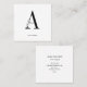 Monogramm, minimalistic Blumen schwarz weiss Fyrkantigt Visitkort