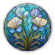 Personlig keramisk knopp tryckt med en elegant Art nouveau faux nedfläckad-glass som föreställer iris-blommor i toner av blues, gröntar, teals och pastells lila och gult. Perfekt för en snyggt konst och hantverk. Texten kan redigeras helt så att du kan lägga till din egen initialer.