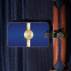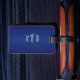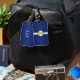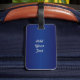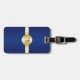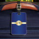 Bagagetaggen monogrammad. Du kan anpassa den här märkrn med valfri text. Om du behöver hjälp med att anpassa kontaktar du oss genom länken på den här sidan. Blått och guld-bagagemärke med monogrammet.
