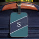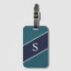 Monogrammad blå Grönt och marin geometrisk Rand Bagagebricka