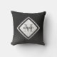Denna moderna kudde har en geometrisk utformning med anpassade namn och monogram i en vit marmor och silver ram på en svart bakgrund.