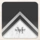 Monogrammad Black Silver Marble Geometric Underlägg Papper Kvadrat