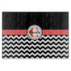 En skärbräda av anpassningsbar med svart och vit schevron mönster. Du kan anpassa den här produkten genom att lägga till din egen initialprodukt och namn i mitten av monogrammet logotyp.