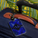 De tropiska blå fronderna i handflatan på svart, bagagemärken har initialer i chic på framsidan och en kortplats på baksidan för enkel identifiering. Skapa dig själv eller ge som gåva.