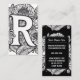 Monogrammad Brev R Black and White Blommigt Flower Visitkort
