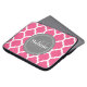 Coola söt chic trendig med stark rosa, grått och vit marockansk lattice quatrefoil mönster med grått-namnplåt för anpassningsbarnas monogram första brev och namn. Underbar gåva till flickflickor som kärlek geometriska mönster och monogrammerade gåvor.
