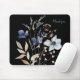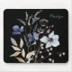 Uppgradera arbetsytan med den här chicen med monogrammad musknapp! Med en söt blå blombukett med svart bakgrund är det blommigt och elegant.