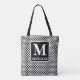 personligens klassiska serif-svartvita rombpunkter i monogrammet, mönstrade över hela påsen till påsen