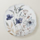 Monogrammad Elegant Chic Vattenfärgsblå blomma Rund Kudde