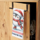 Skapa en personlig julhandduk med en modern design som har en söt isskrikande penguin på vit bakgrund med snöflingor och prydnadsföremål. Använda mallen om du vill skriva ditt namn eller ett ordspråk för julhelgens unika köksdekoder.