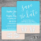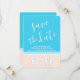 Meddela de glatta nyheterna om din förlovning och det kommande strandbröllopet med ett unikt monogram för anpassningsbar spara datuminbjudningarna. Alla formuleringar i den här mallen är enkla att anpassa. (IMAGE PLACEMENT TIP: Ett enkelt sätt att centrera ett foto exakt som du vill är att flytta det till skörd innan du laddar upp det till Zazzle-webbplatsen.) Pastellpersikan och turkosplåret med blå design har en ljusvit typografi och söt monogrammad flinflip flops på en abstrakt modern minimalistisk strand. Den handskrivna kalligrafin i stil-manuset är tänkt att likna himlar som skriver ovanför havet. Det här snyggt tillkännagivandet av tropisk förlovning är ett elegant sätt att informera familj och vänner om ditt kommande destinationsbröllop firande i paradiset. Grattisar till bruden och brudgummen!