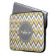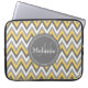 Monogrammad Gult & Grått Chevron Mönster Laptop Sleeve