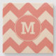 Monogrammad Light Coral Zigzag Mönster Underlägg Sten