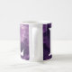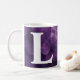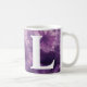 Ett vackert mugg med monogrammet och lila blommigt med målad bakgrund.