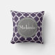 Monogrammad Lila & Grått Quatrefoil Kudde